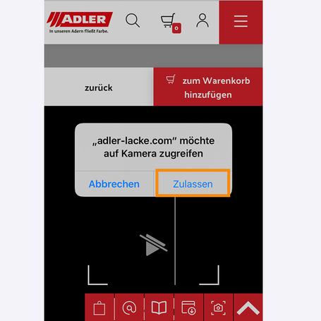 To scan the EAN code you need to use the camera of your device. For this, you will have to allow the application to access the camera.
