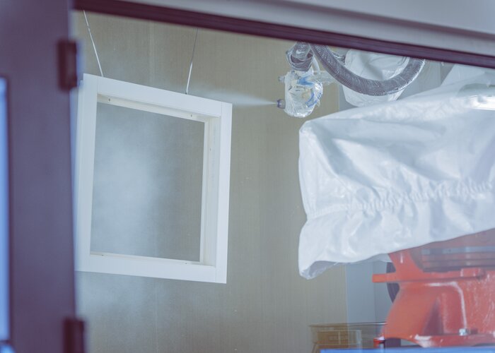 En målningsrobot är lämplig för stora tredimensionella delar såsom dörrar eller fönsterramar. Därmed kan delar inom trä- och möbelproduktionsprocesser tillverkas med konstant hög kvalitet.